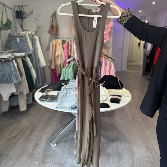 Khaki Tie Waist Jumpsuit